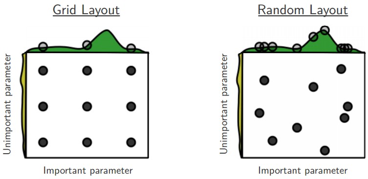 Prefer random search to grid search. As argued by Bergstra and Bengio in Random Search for Hyper-Parameter Optimization, “randomly chosen trials are more efficient for hyper-parameter optimization than trials on a grid”. As it turns out, this is also usually easier to implement.