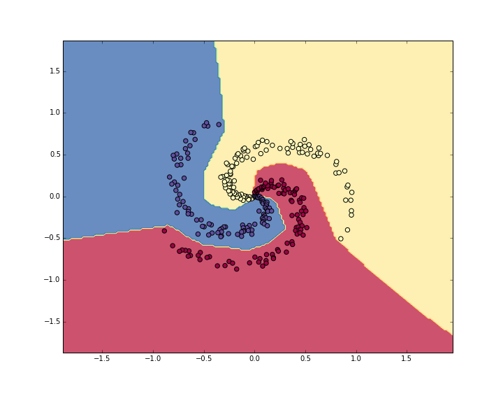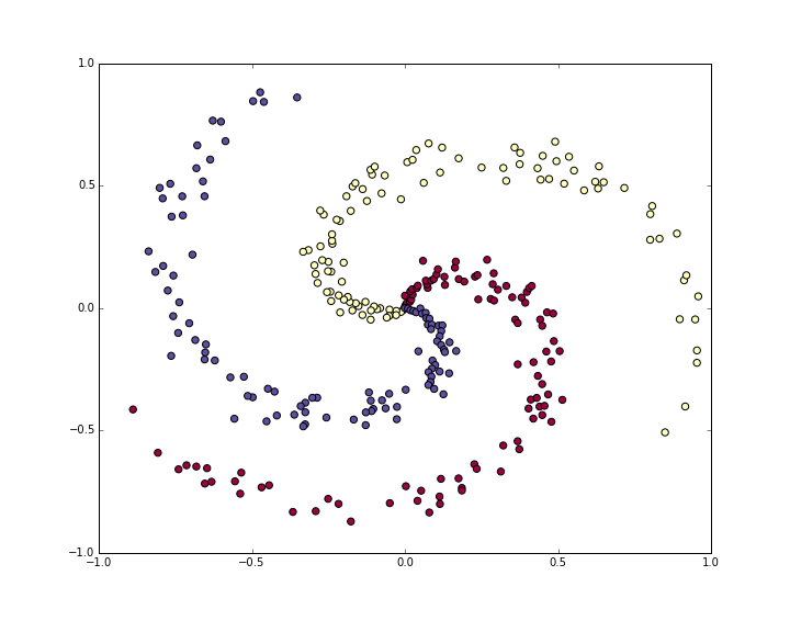 In this section we’ll walk through a complete implementation of a toy Neural Network in 2 dimensions. We’ll first implement a simple linear classifier and then extend the code to a 2-layer Neural Network. As we’ll see, this extension is surprisingly simple and very few changes are necessary.