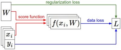 - A loss function that measured the quality of a particular set of parameters based on how well the induced scores agreed with the ground truth labels in the training data. We saw that there are many ways and versions of this (e.g. Softmax/SVM).
